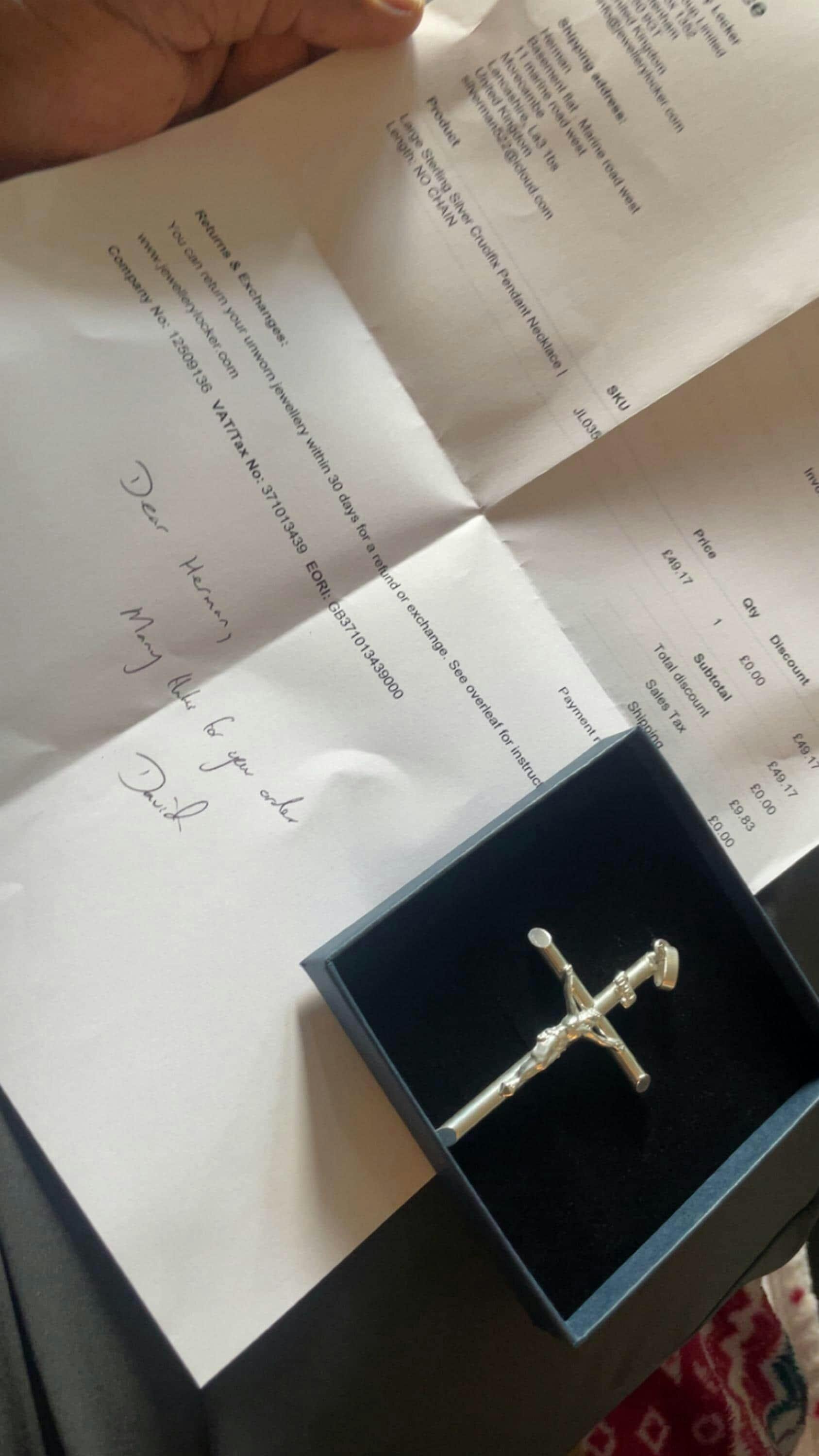 I ordered rhe Crucifix and chain and i can honestly say it is a qualuty product. I get compliments on it daily. Its the perfect size , hangs beautifully abd is masterfully made. I would highley recommed this beautiful Crucufix and chain