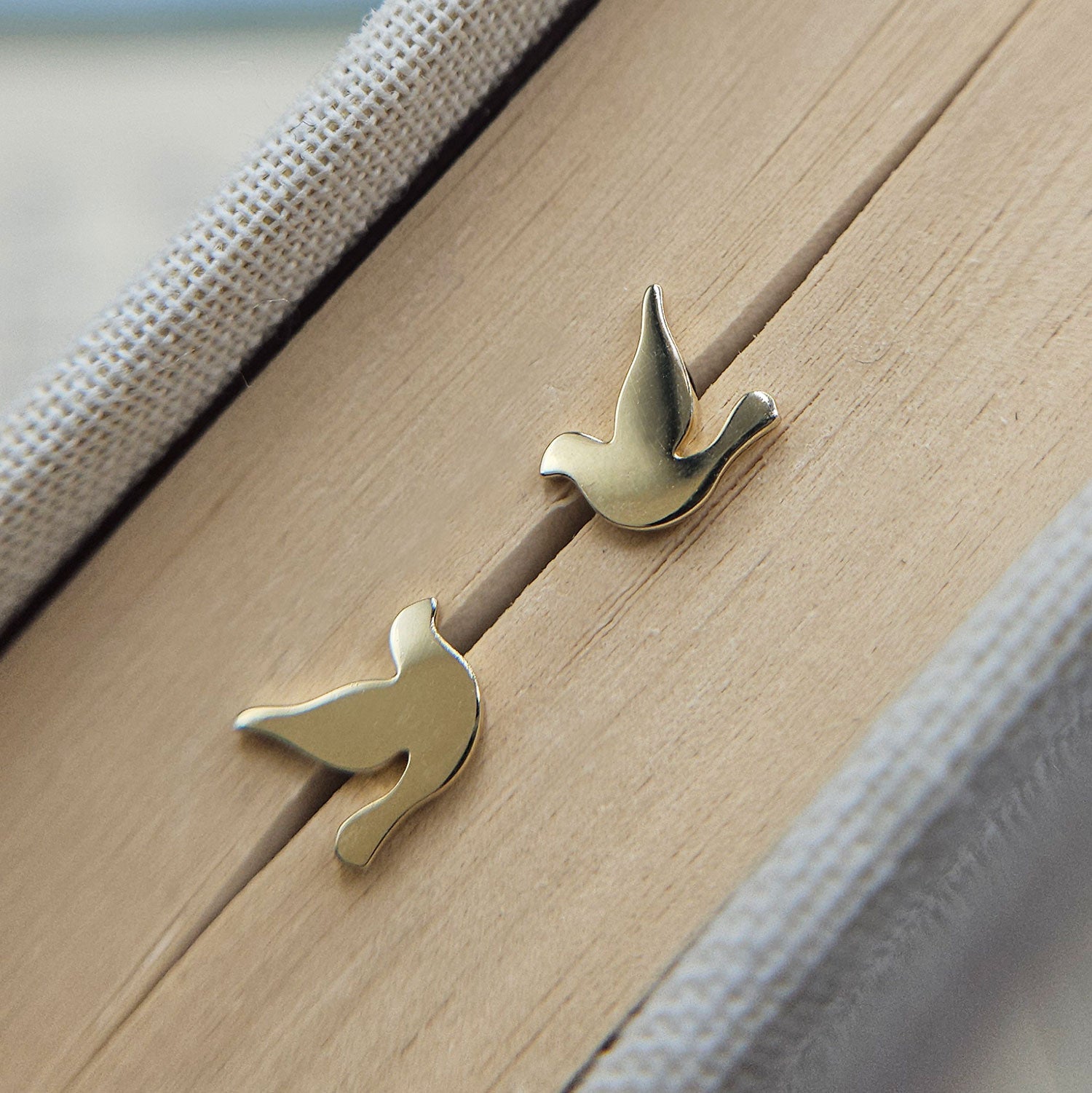 Crafted from solid gold with a polished finish that brings each tiny dove to life, these dainty earrings are ideal for those who appreciate meaningful jewellery with subtle elegance - whether worn alone for minimalist sophistication or paired with other pieces for a layered look.