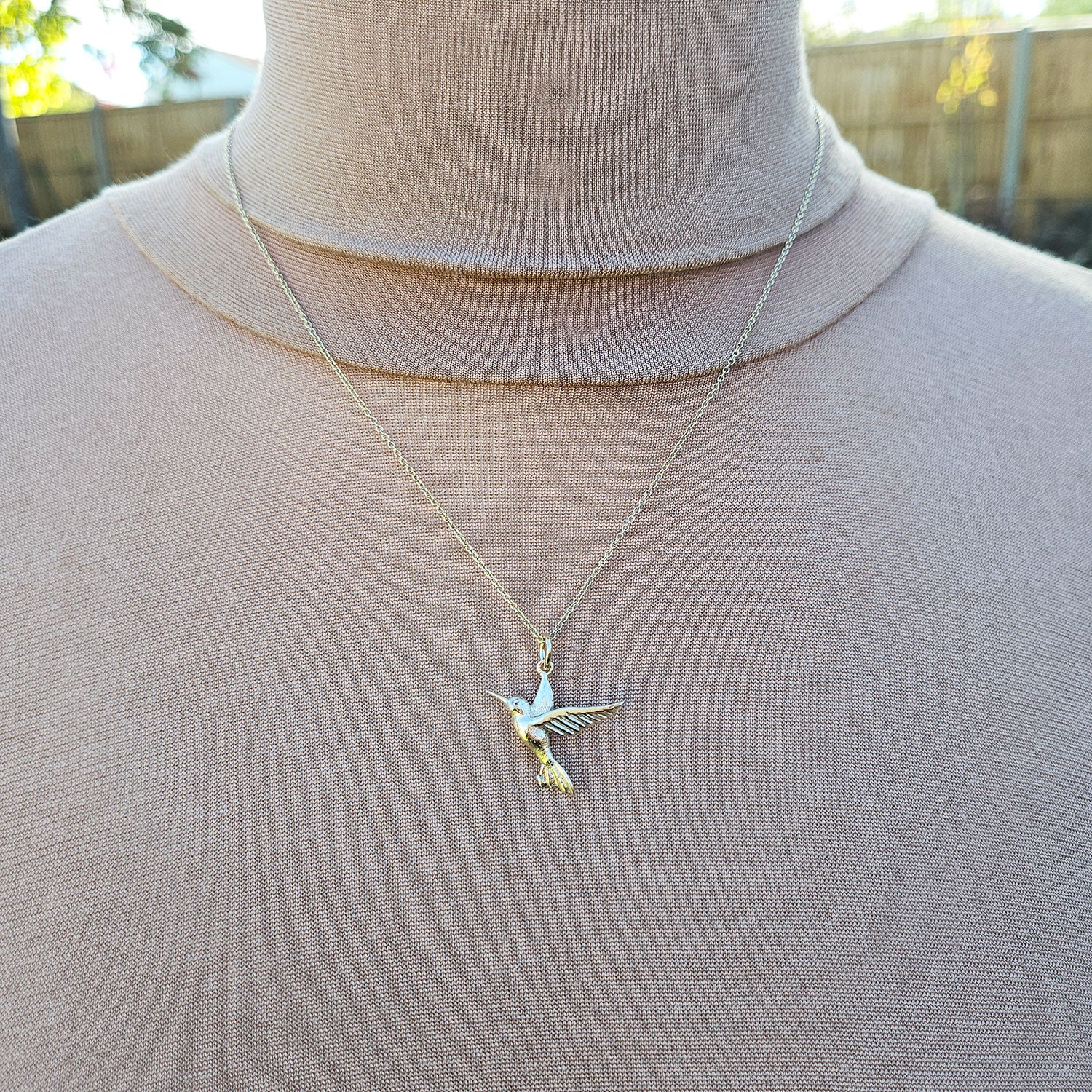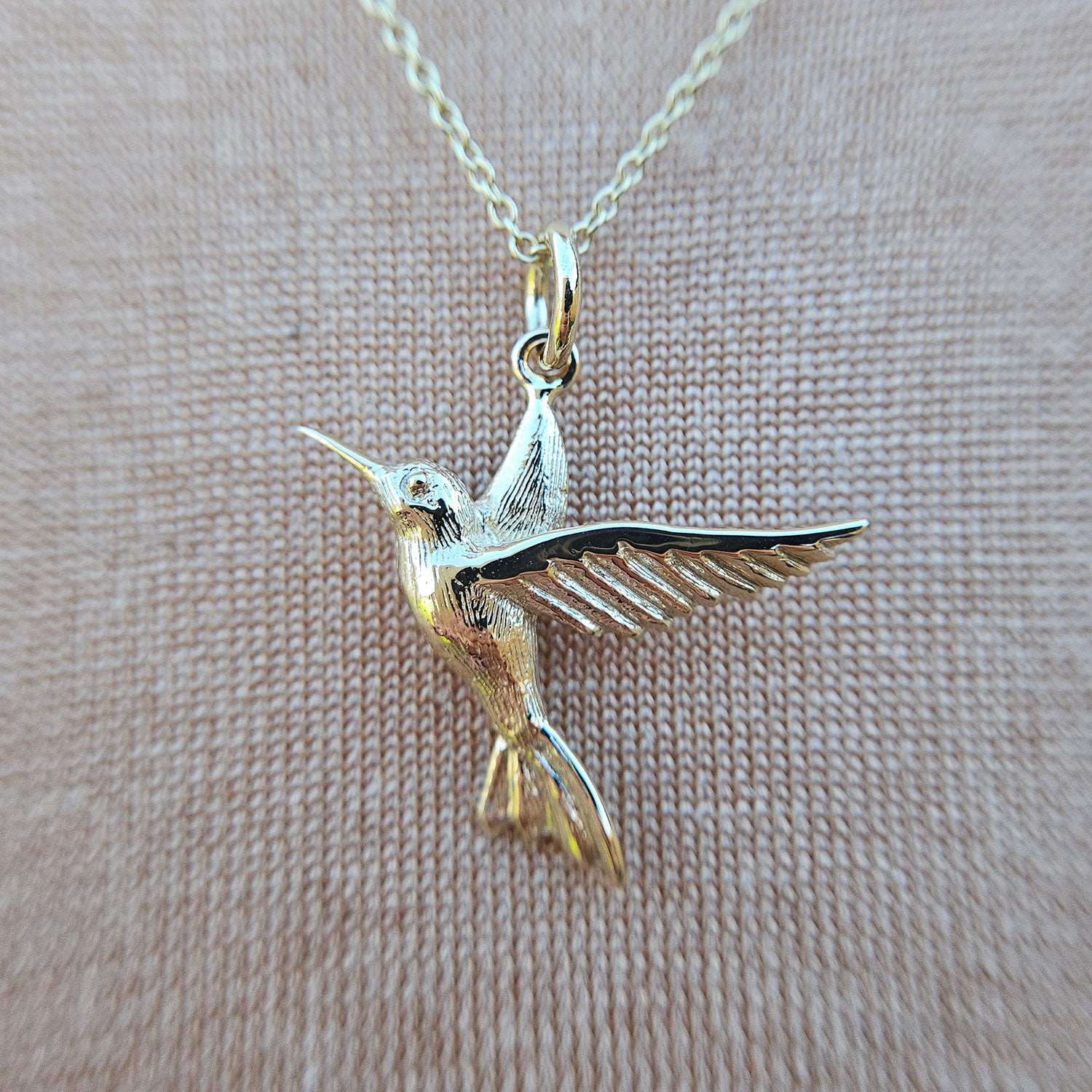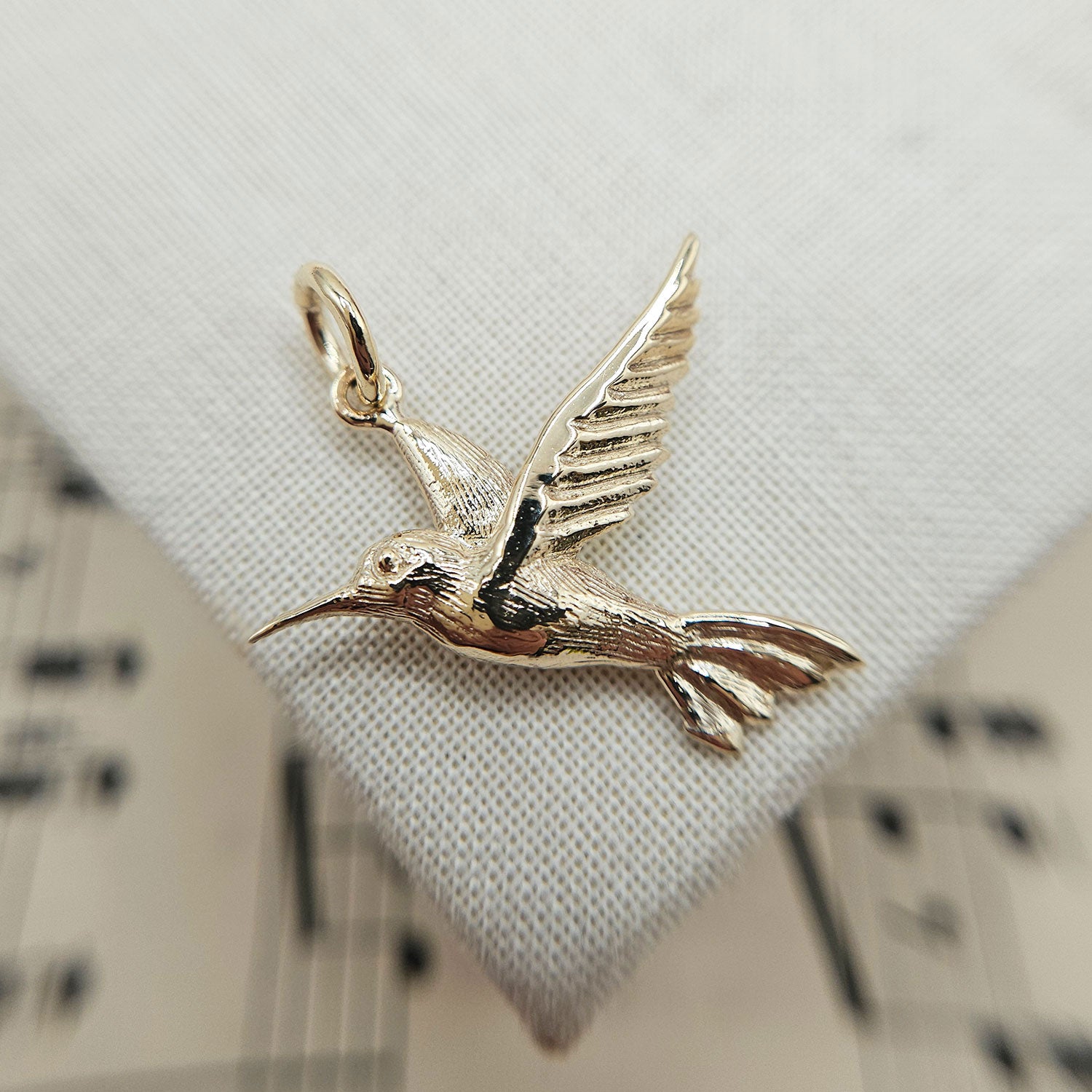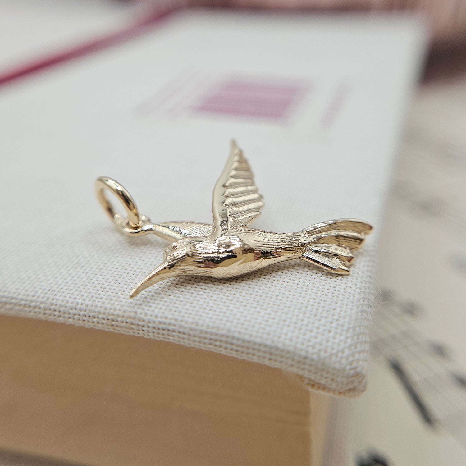 We love this hummingbird pendant - she is absolutely beautiful. Cast from solid 9ct gold, in Birmingham UK, this fabulous piece of jewellery has a full British hallmark on its loop. Buy the hummingbird on her own, or add our optional dainty 1.2mm trace chain necklace. However you wear her, she will be a wonderful companion.