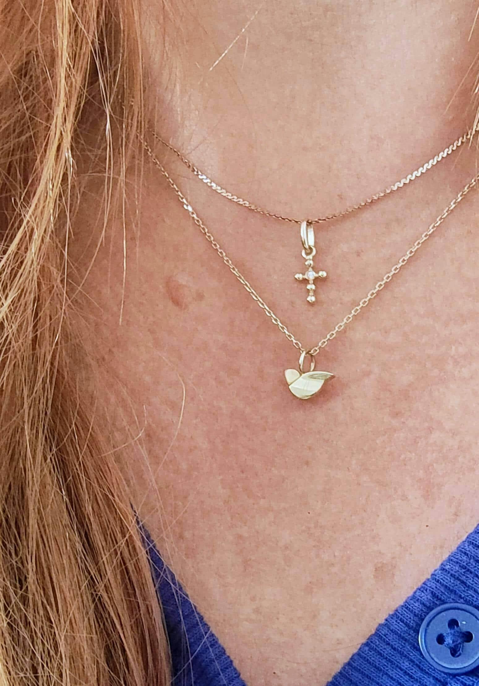 Add a touch of faith to your charm collection with our exquisite Micro Gold Bobble Cross Charm. This delicate 9ct gold piece features a distinctive bobble texture that catches the light beautifully, creating subtle shine with every movement.
