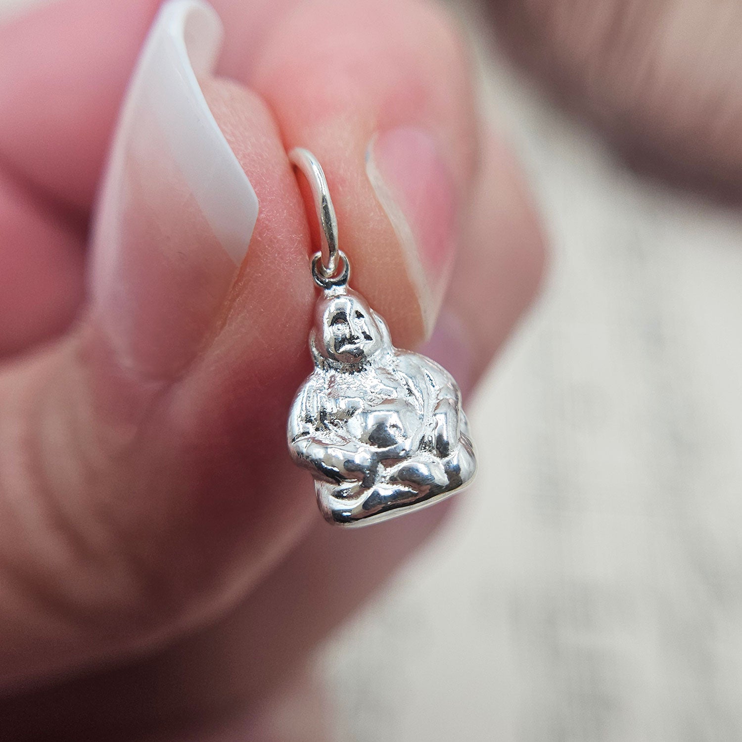 Your very own British-made Buddha, cast in Birmingham's jewellery quarter in solid 925 sterling silver. This wonderful Buddha charm can be purchased as a standalone item, or as a necklace on a fine sterling silver curb chain (not hallmarked). A really special piece of jewellery to treasure with an English hallmark on the charm loop. Your Buddha will arrive beautifully boxed and ready to gift.