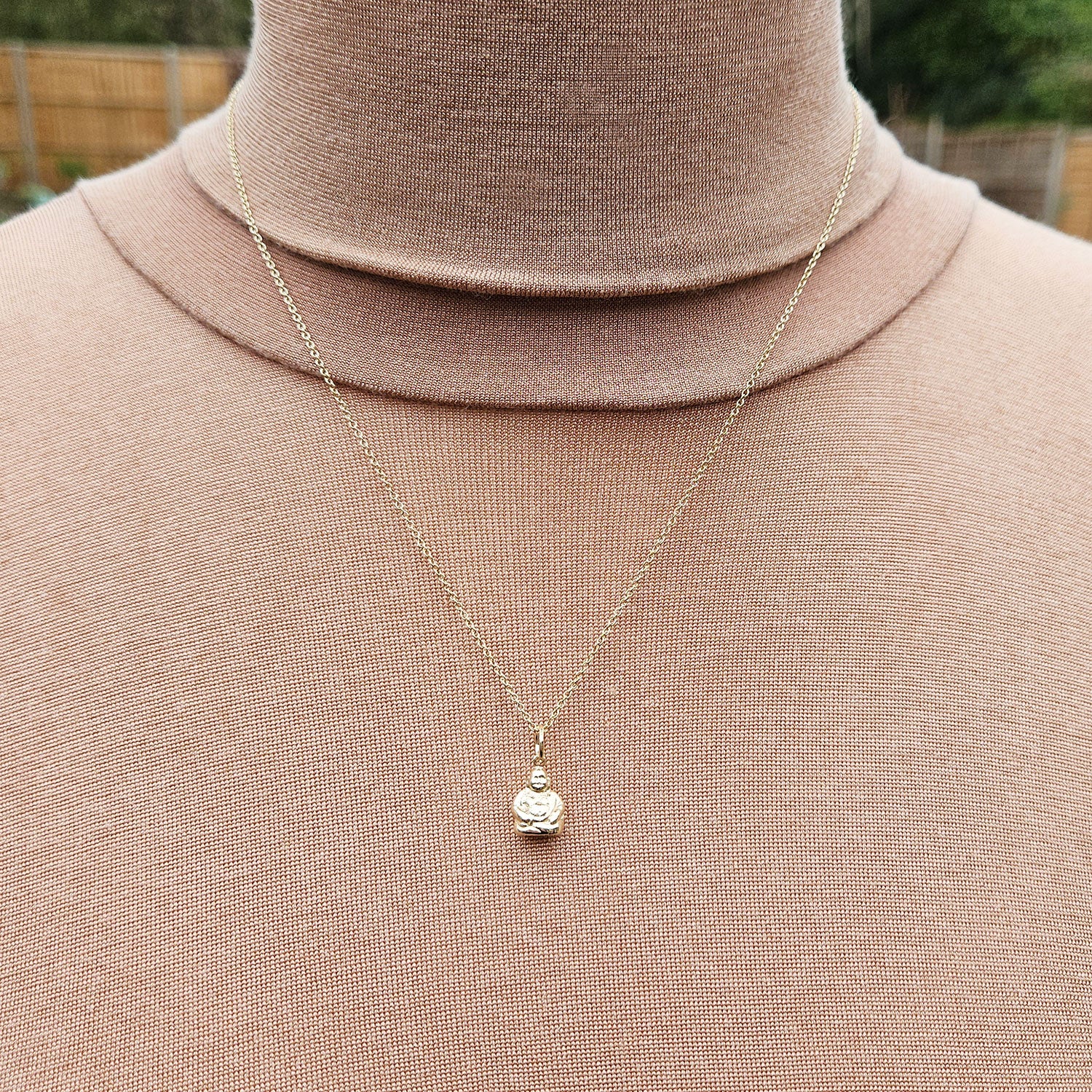 Your very own British-made Buddha, cast in Birmingham's jewellery quarter in solid 9ct yellow gold. This wonderful Buddha charm can be purchased as a standalone item, or you can add our fine 9ct gold trace chain as an extra. A really special piece of jewellery to treasure with an English hallmark on the charm loop. Your Buddha will arrive beautifully boxed and ready to gift.
