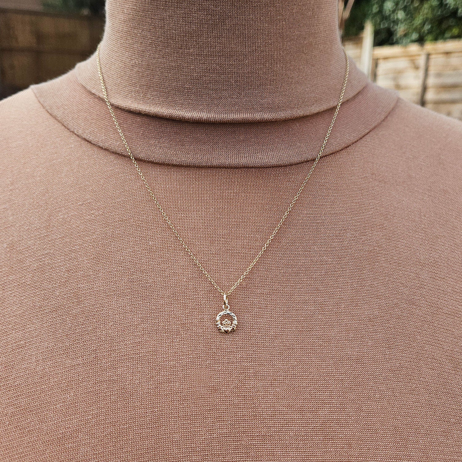 Your very own British-made Claddagh charm, cast in Birmingham's jewellery quarter in solid 9ct gold. This very small and very wonderful charm can be purchased as a standalone item, or you can add our fine 9ct gold trace chain as an extra. A really special piece of jewellery to treasure with an English hallmark on the reverse. Your Claddagh charm will arrive beautifully boxed and ready to gift.