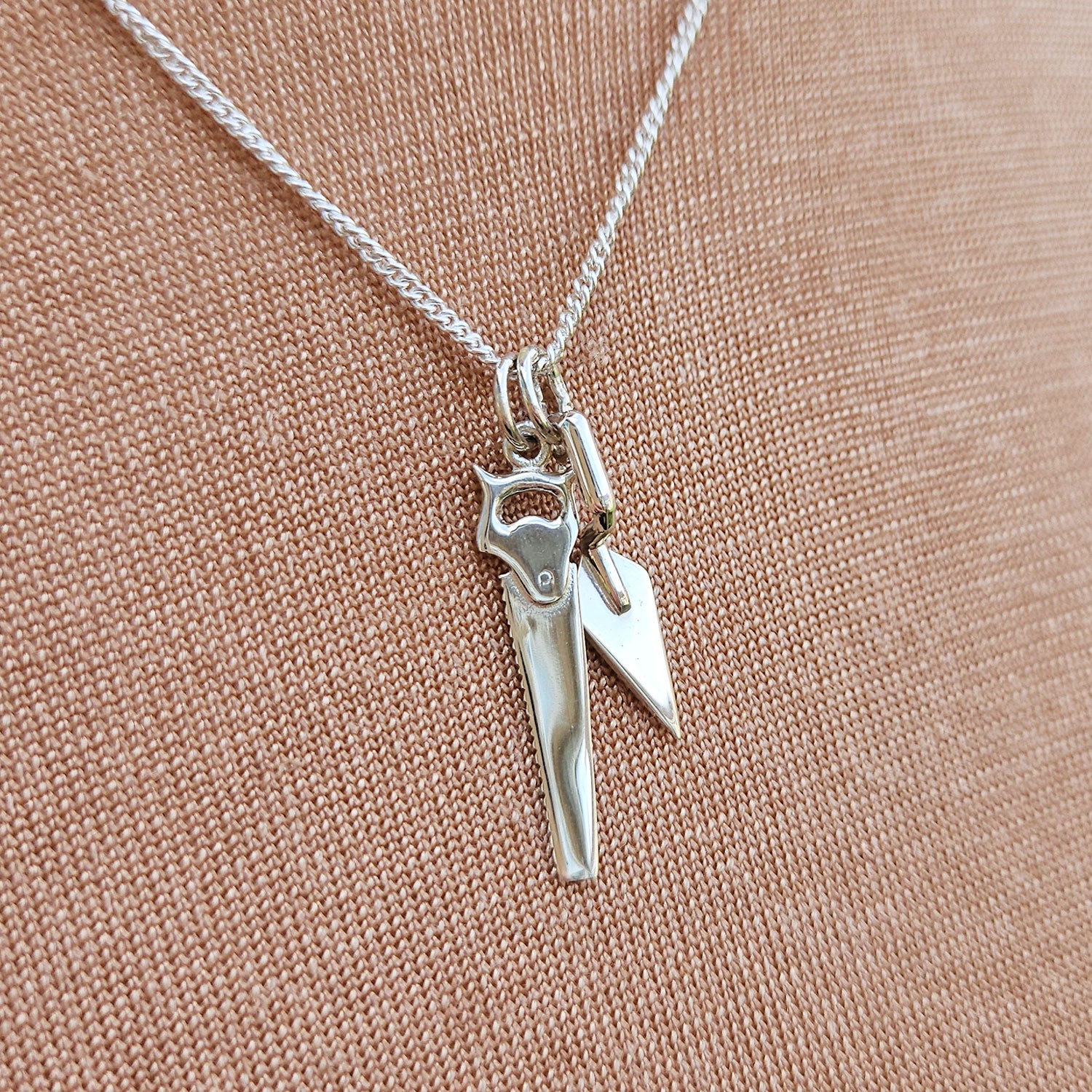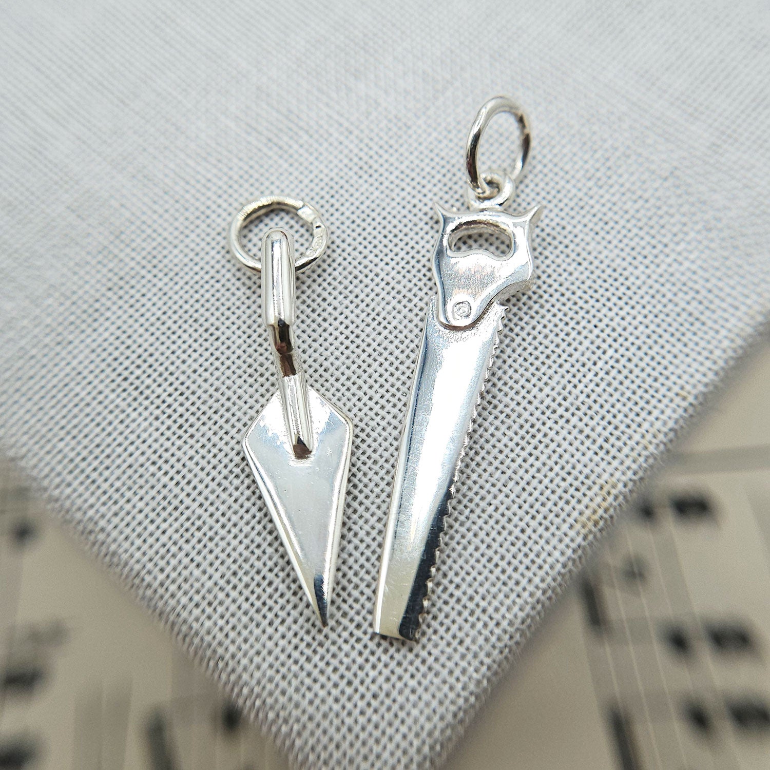 The perfect charm set for the builder or carpenter in your life. A hand saw and builder's trowel, cast in Birmingham's historic Jewellery Quarter in solid 925 sterling silver. You can purchase each charm individually or both together. Buy them to add to your charm bracelet, or purchase our fine curb chain (not hallmarked) to make a builder themed necklace. The charms are special items of jewellery to treasure with an English hallmark on each loop. Your charms will arrive beautifully boxed and ready to gift.
