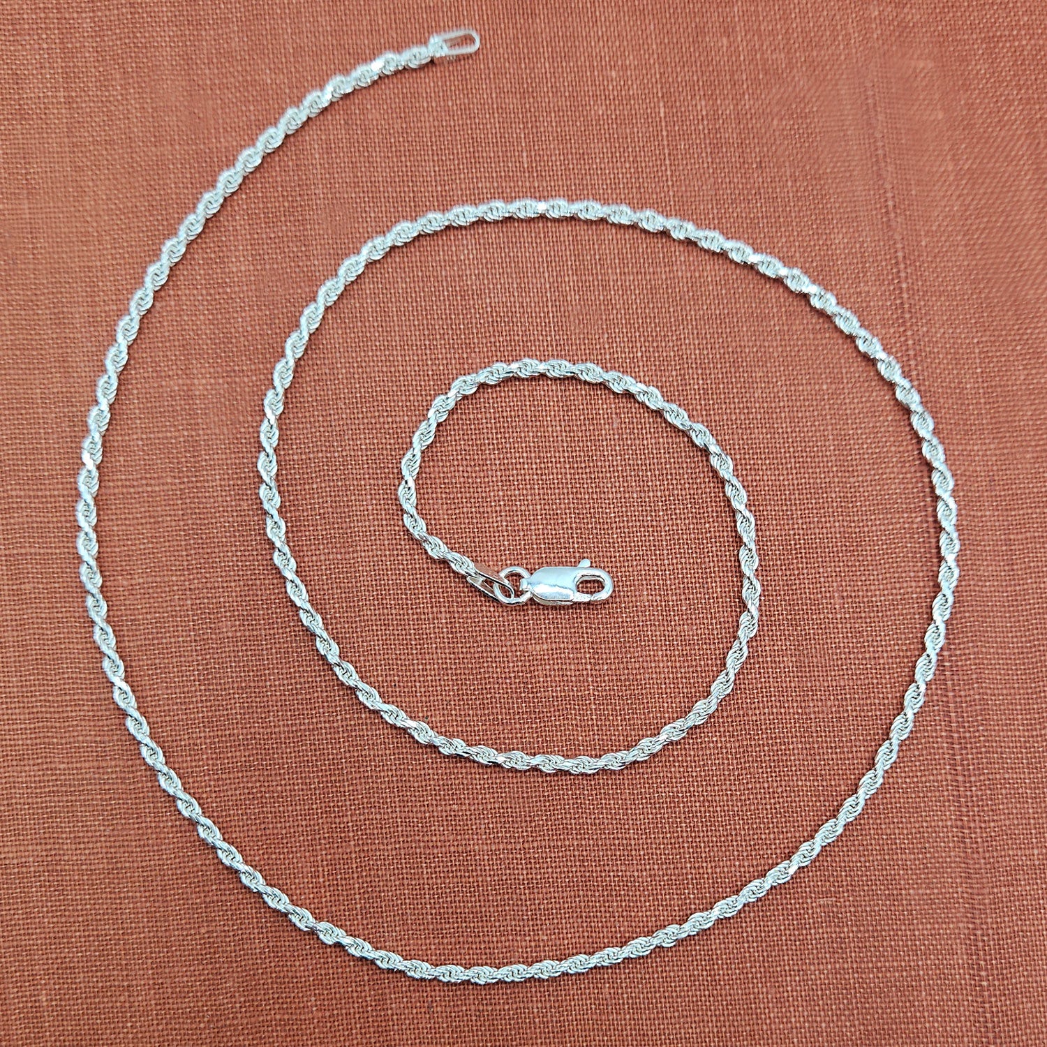 This sterling silver rope chain is a classic piece that works beautifully on its own or paired with your favourite pendant. The twisted rope design catches the light nicely and has that timeless look that never really goes out of style.