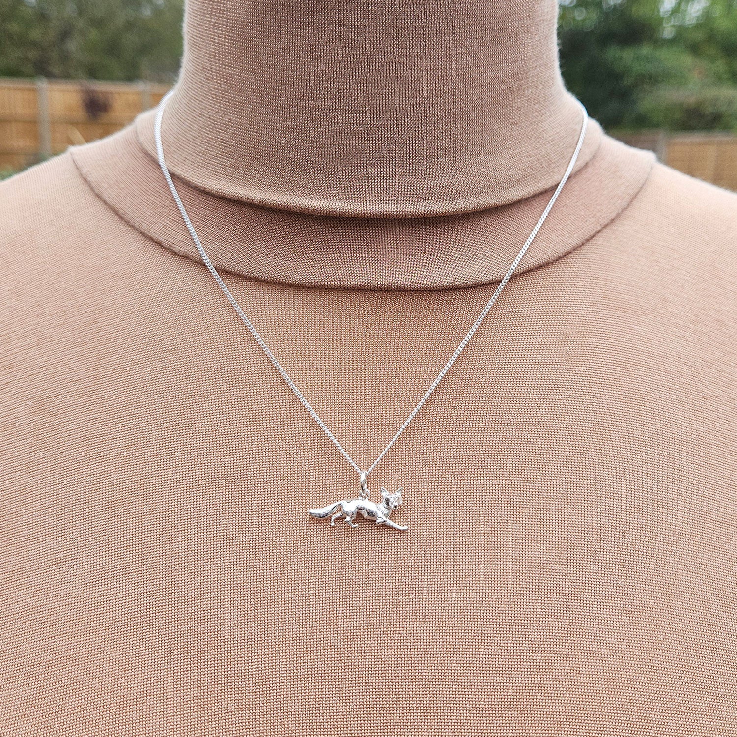 Your very own British-made running fox, cast in Birmingham's jewellery quarter in solid 925 sterling silver. This wonderful fox charm can be purchased as a standalone item, or as a necklace on a fine sterling silver curb chain (not hallmarked). A really special piece of jewellery to treasure with an English hallmark on the charm loop. Your fox will arrive beautifully boxed and ready to gift.