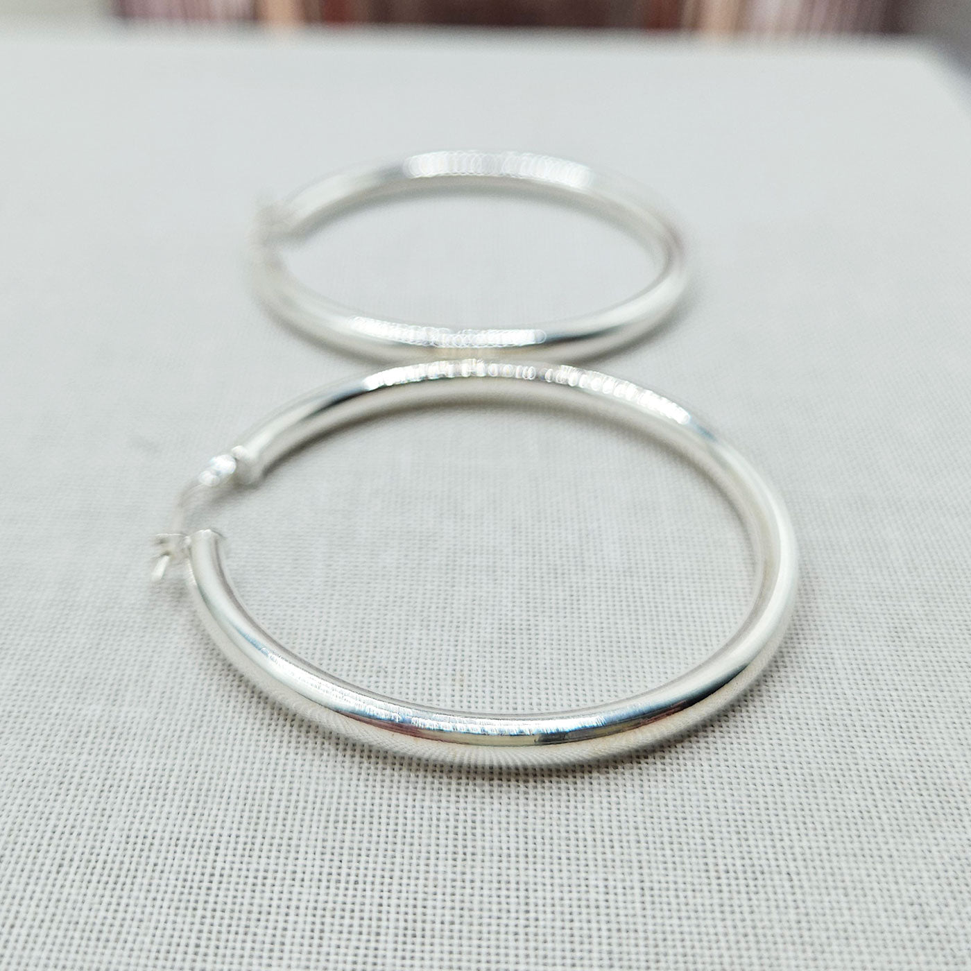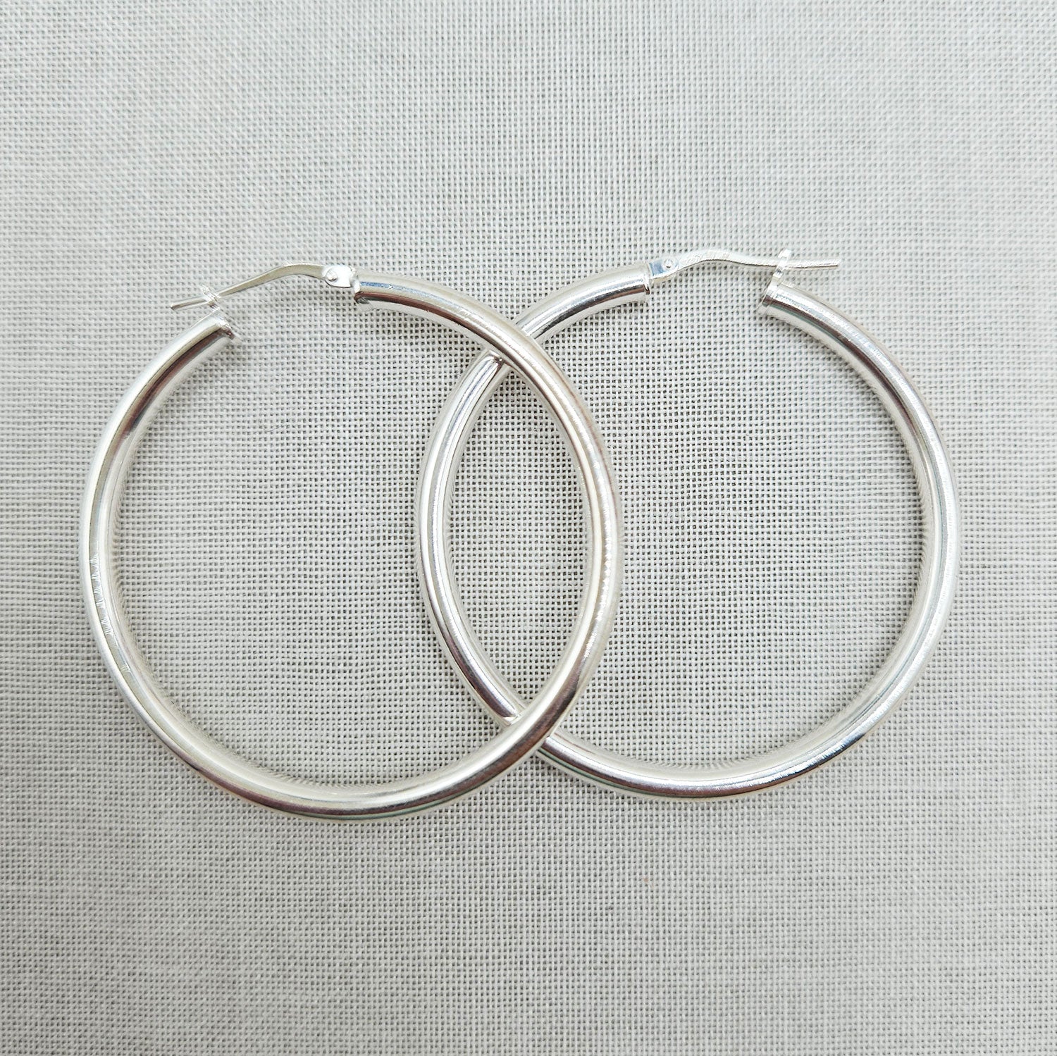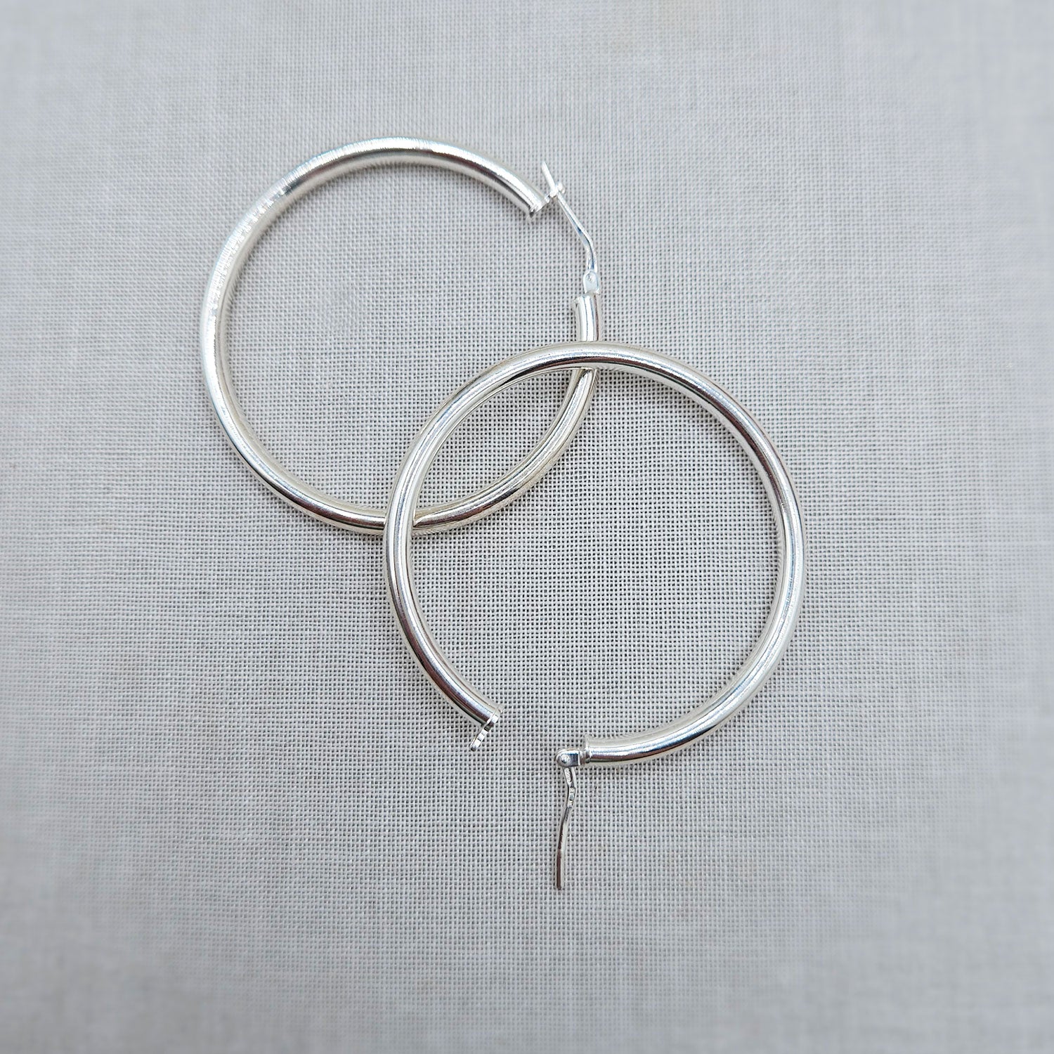 Elevate your everyday style with these stunning 3.4cm sterling silver hoop earrings – the perfect balance of statement vs comfort.