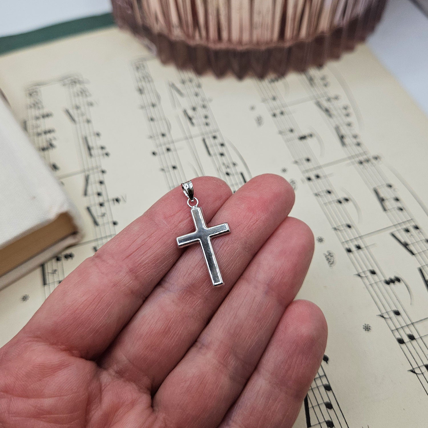 The white gold cross is small(ish) and measures 1.5cm wide and 2.2cm long, creating a comfortable everyday size that's visible without being oversized. At just 0.5 grams, this lightweight cross pendant is ideal for all-day wear and won't feel heavy on your chain.